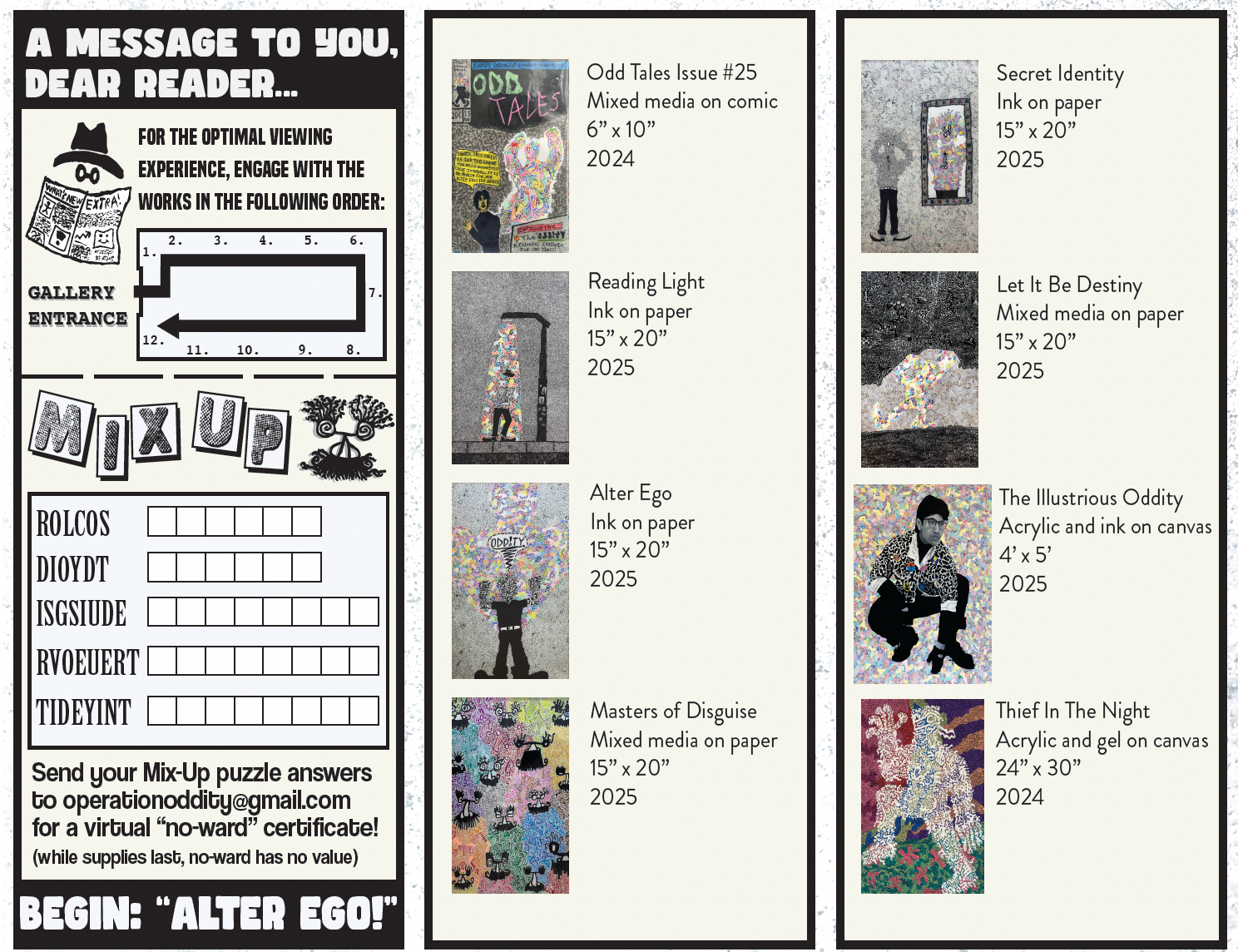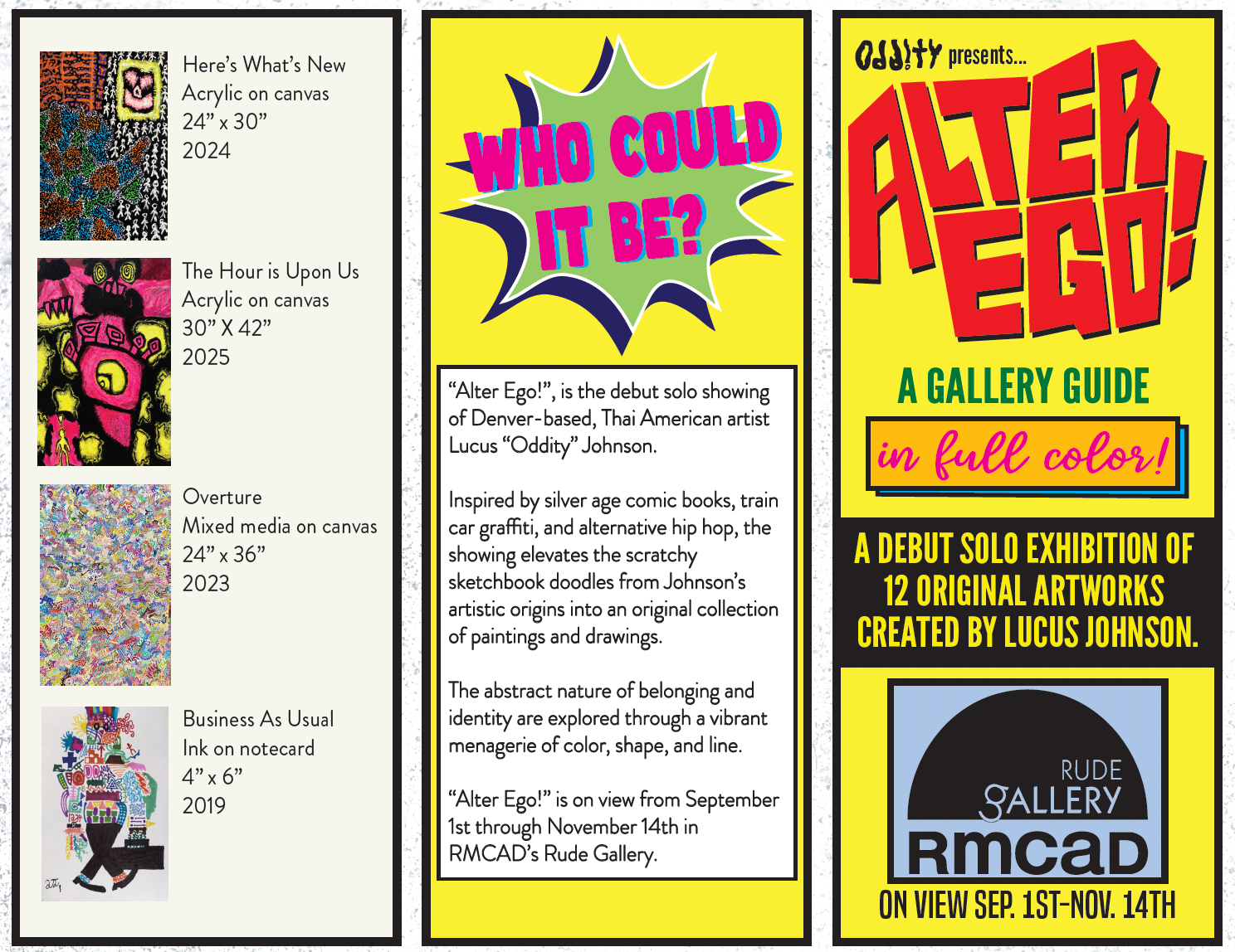 Originally proposed and accepted in the spring of 2024,“Alter Ego!” opened in late 2025, running September 1st through November 14th. The October 3rd reception was aligned with the opening of my curated group show, "Oddities Noir" and my featured work in the juried RMCAD 62nd Annual Student Exhibition.