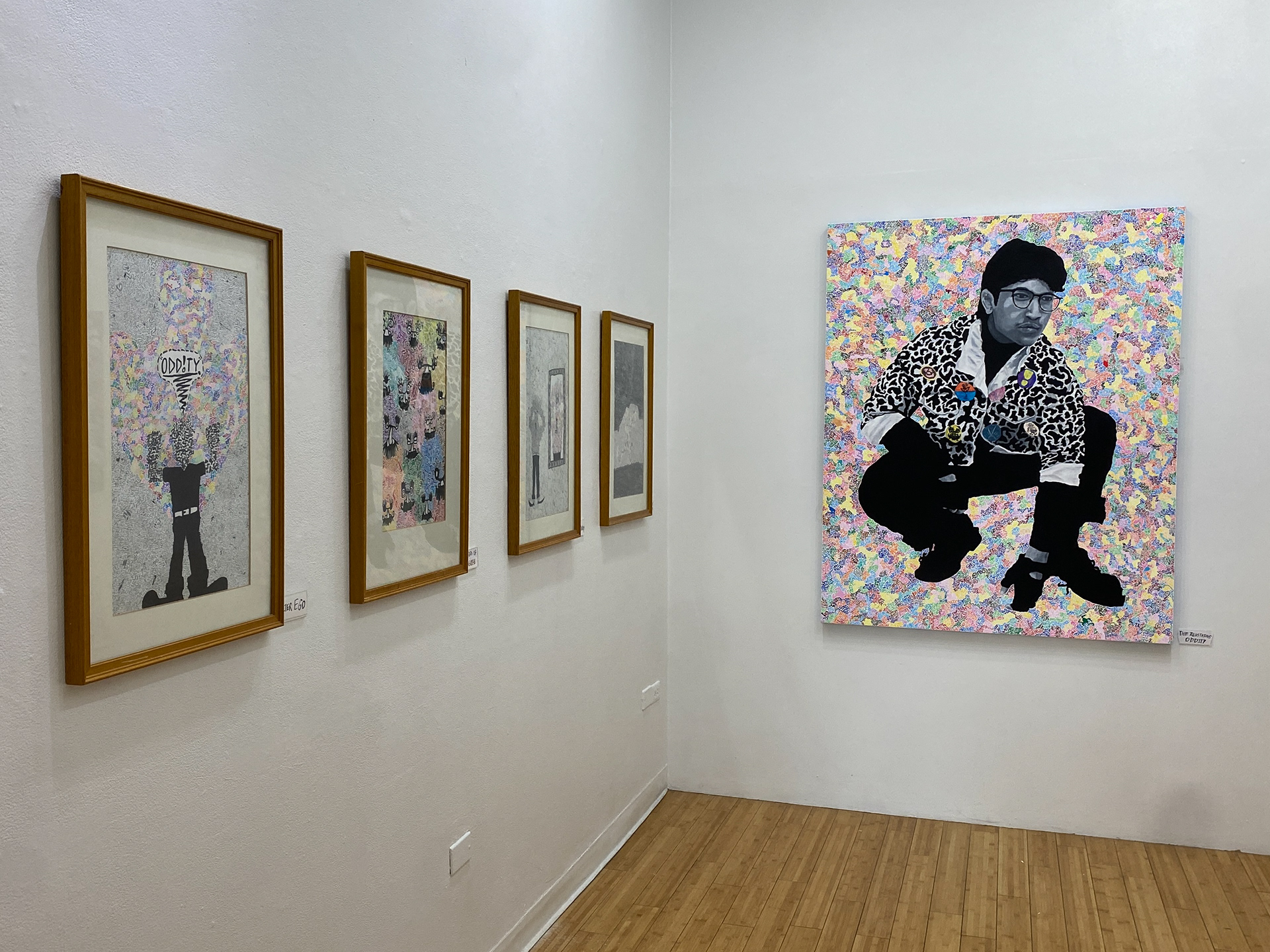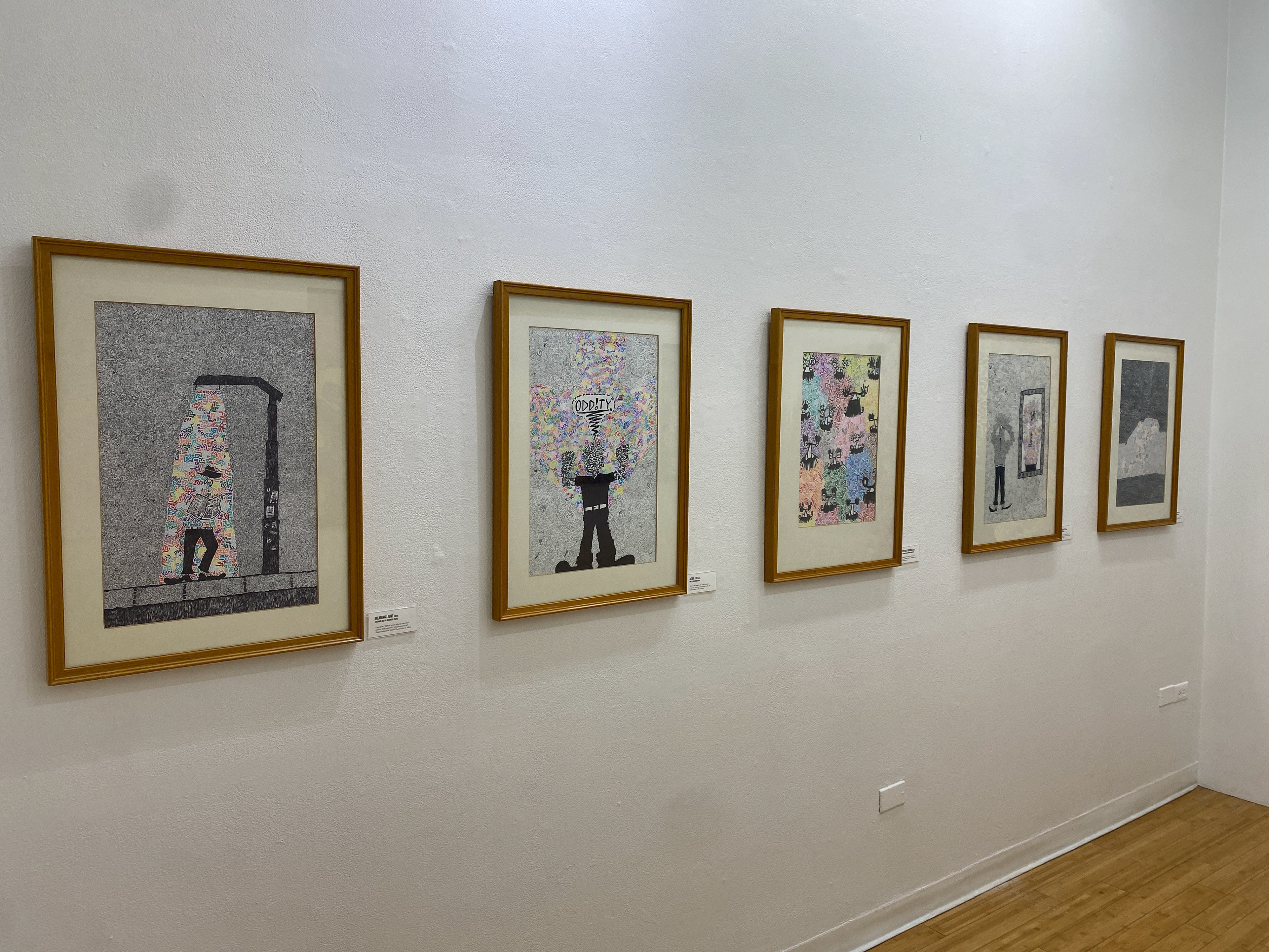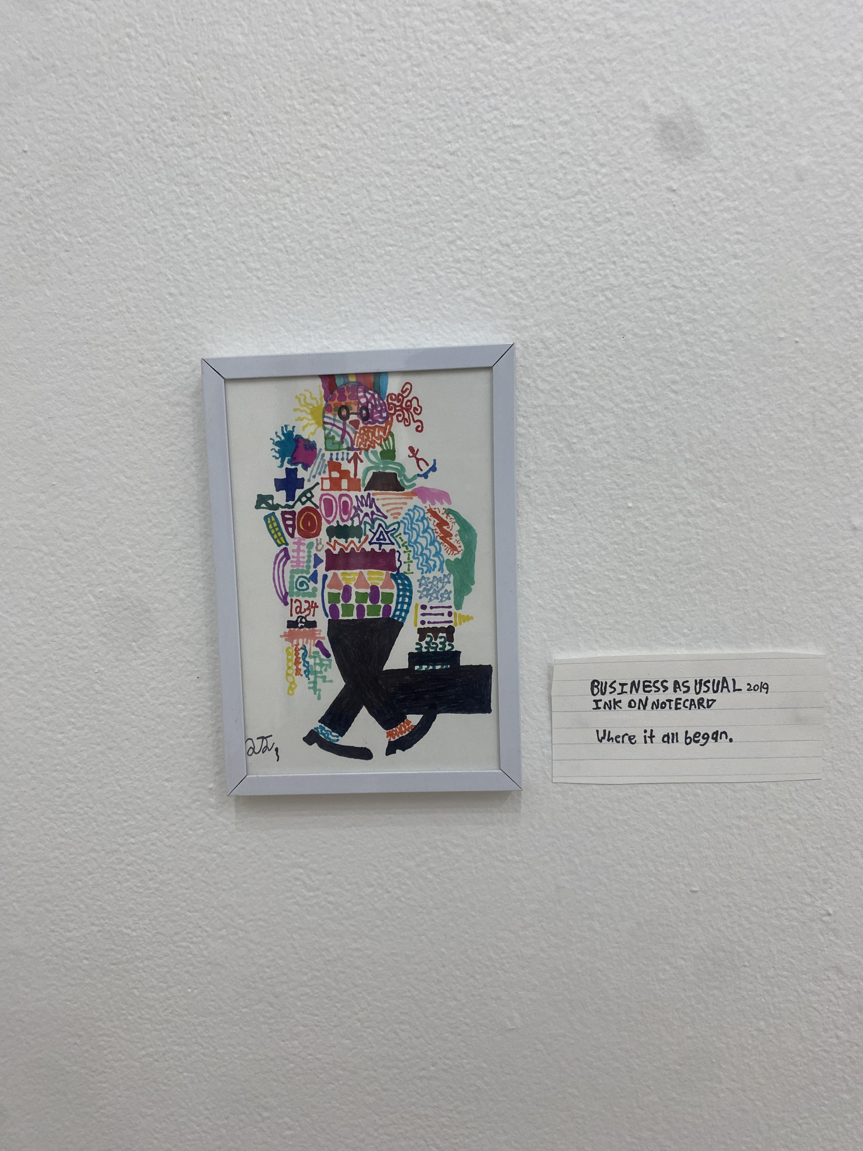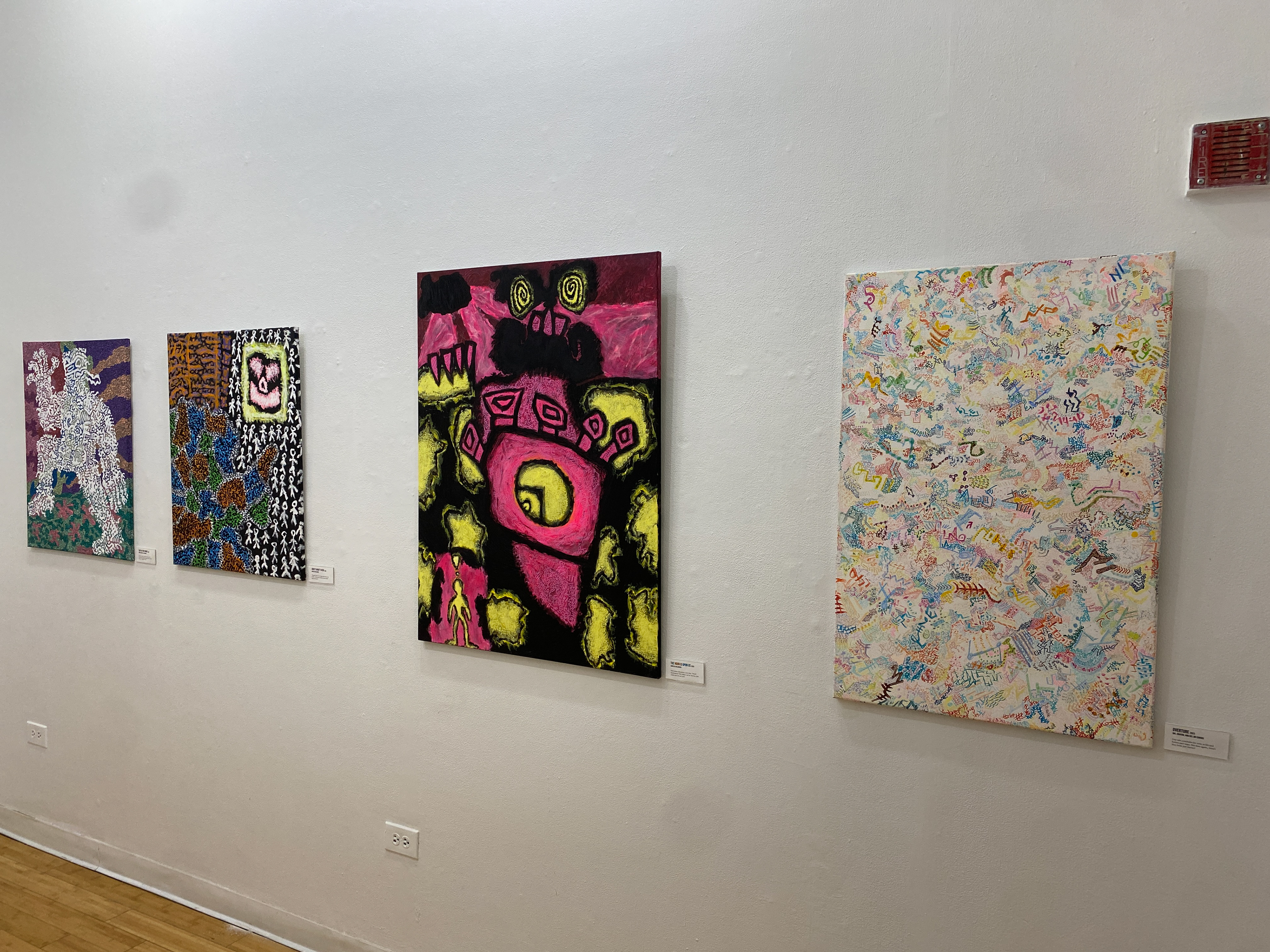 “Alter Ego!”, was my debut solo showing at RMCAD's Rude Gallery. Inspired by silver age comic books, box car graffiti, and alternative hip hop; the showing elevates the sketchbook doodles from my creative origins into an original collection of paintings and drawings. The abstract nature of belonging and identity are explored through a vibrant menagerie of color, shape, and line.