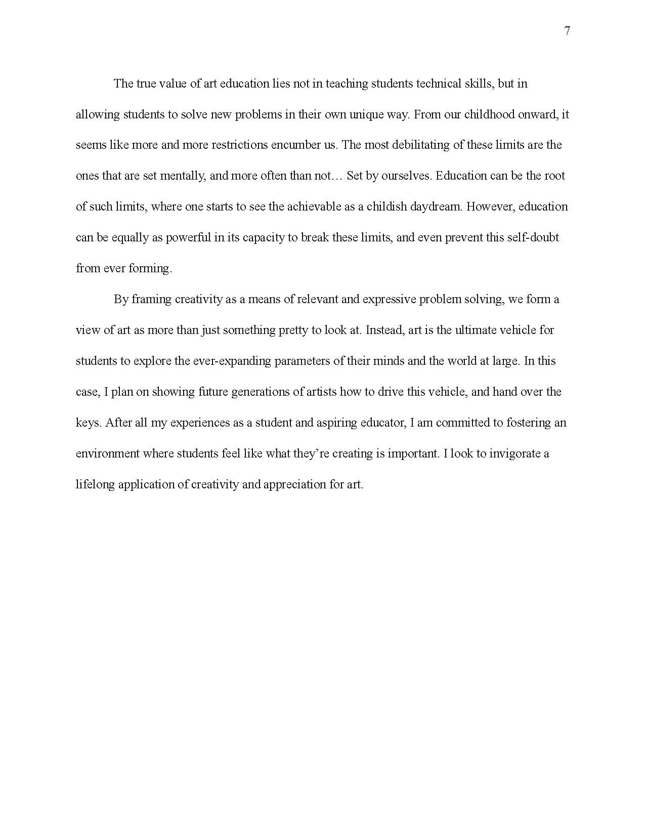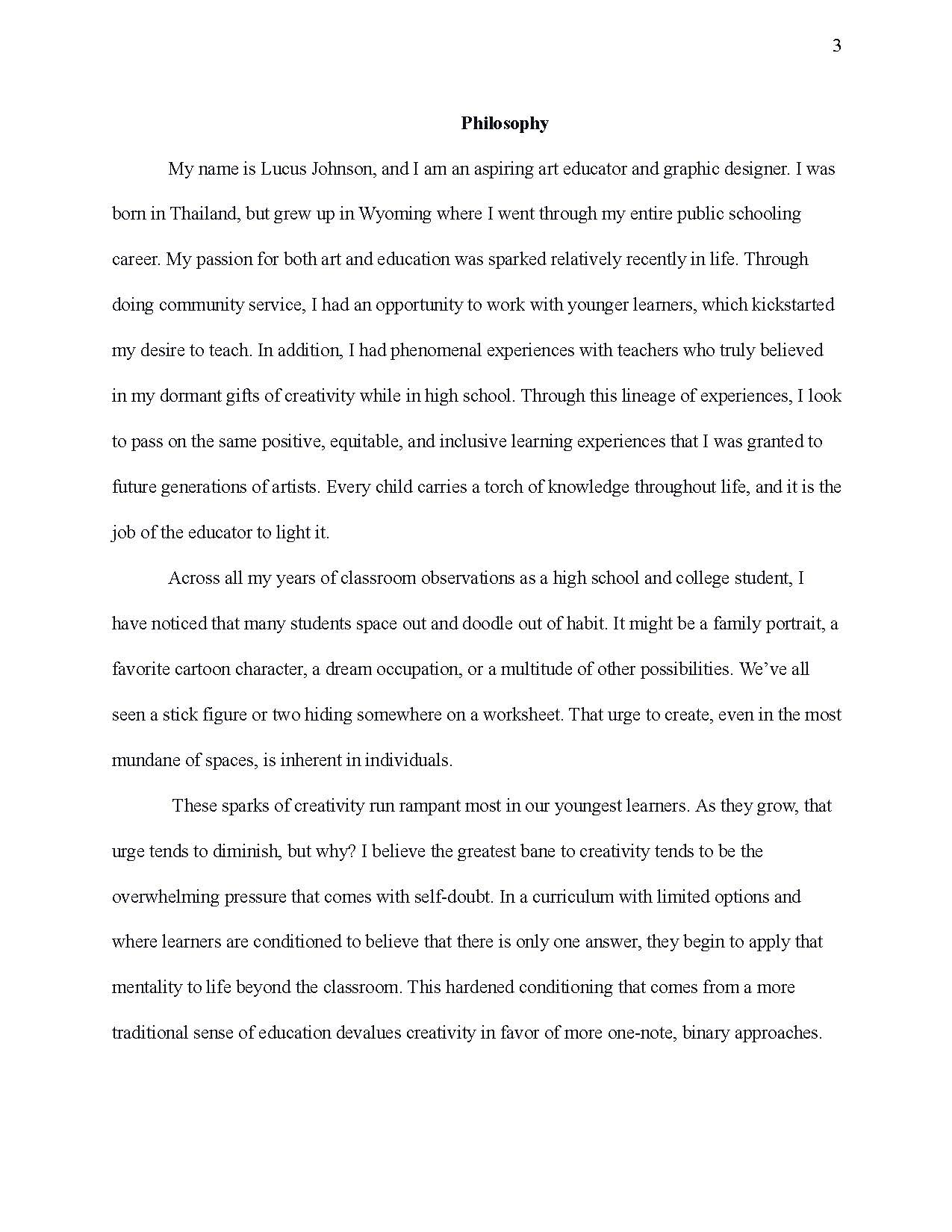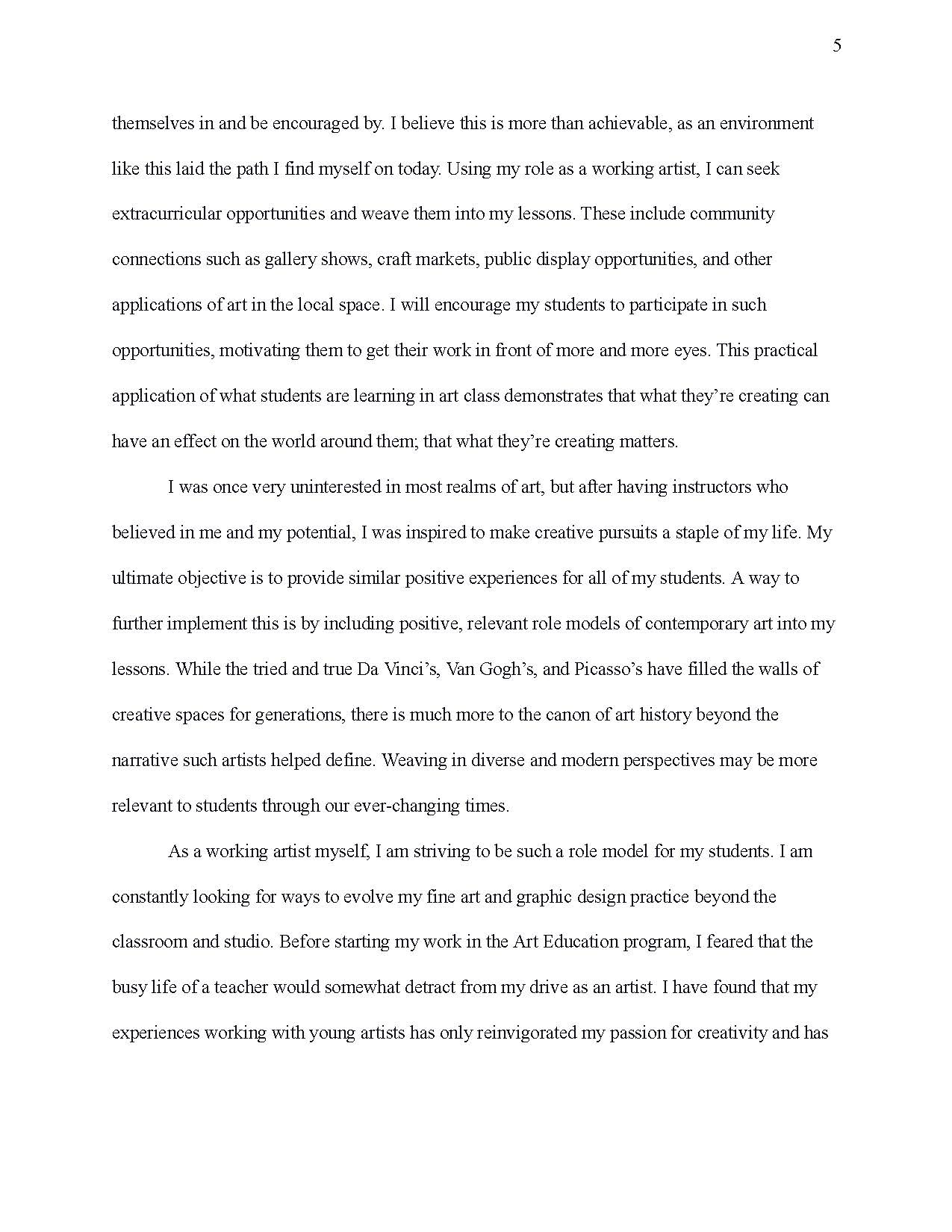 Throughout my degree program and even back to my own time as a public school student, I've noticed that the youngest learners tend to be the most creative. Somewhere along the way, students become more reluctant to take risks and let their voices be heard. Art education should reignite this youthful fearlessness by being a progressive journey that rewards rigorous expression. To inspire this within my students, I am continuously evolving my dual identity as an artist and educator.