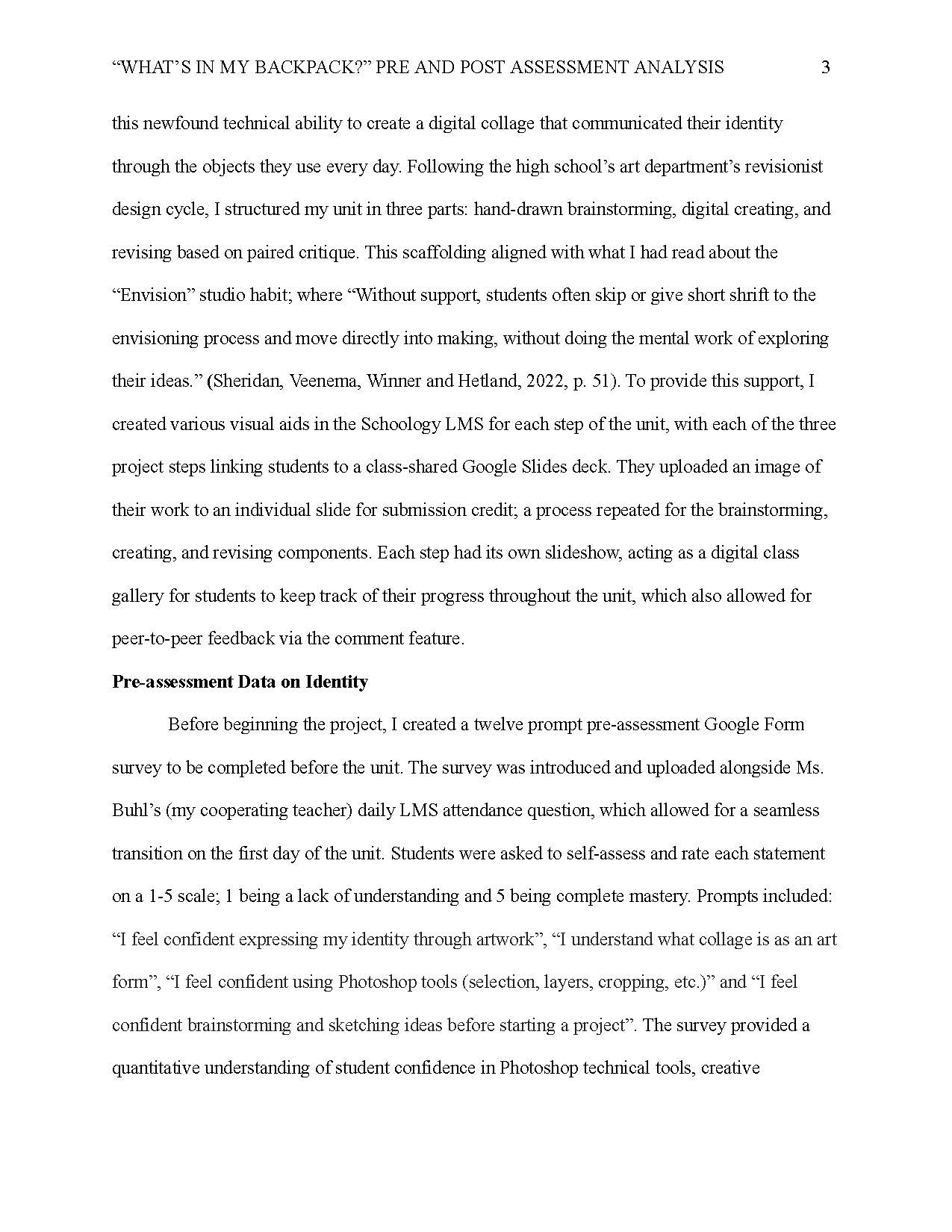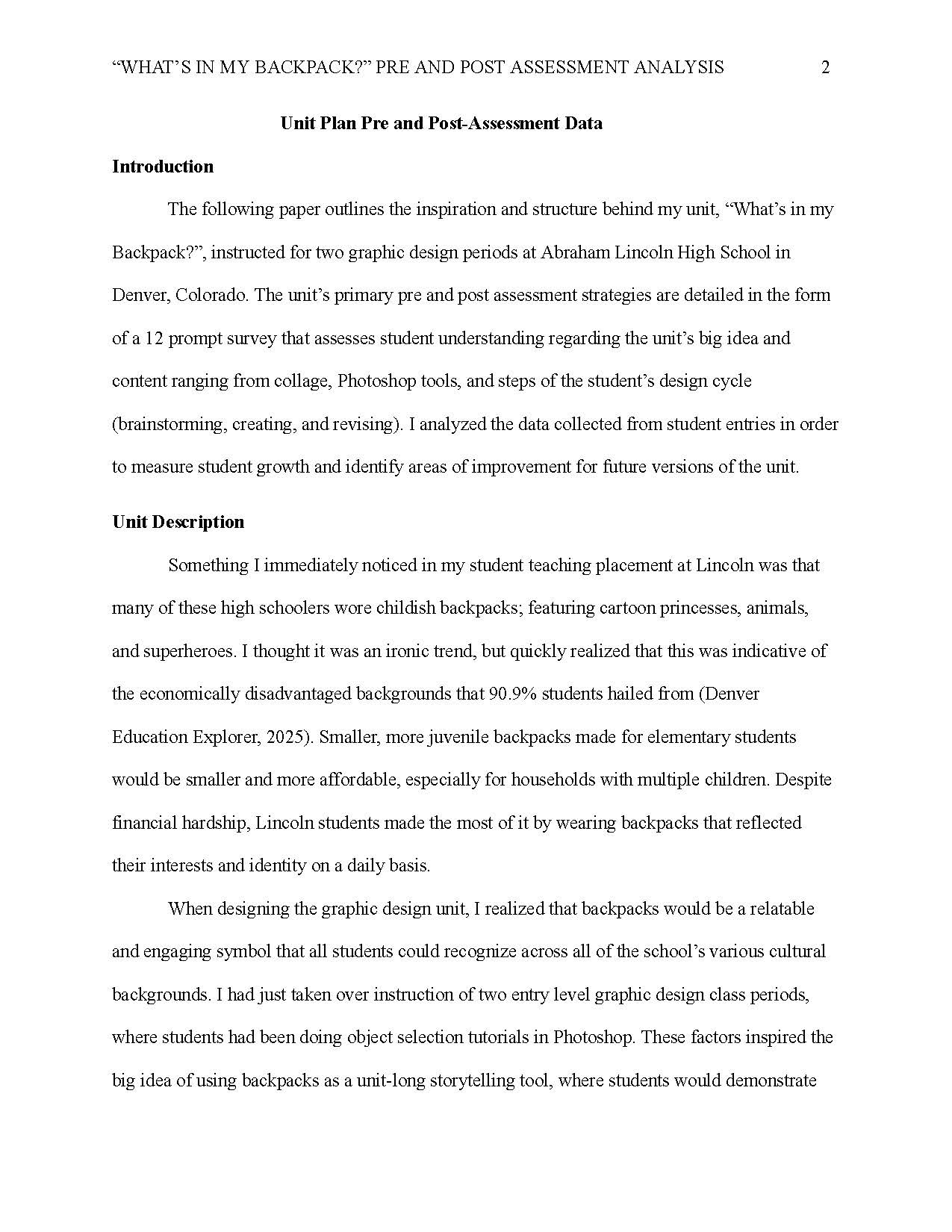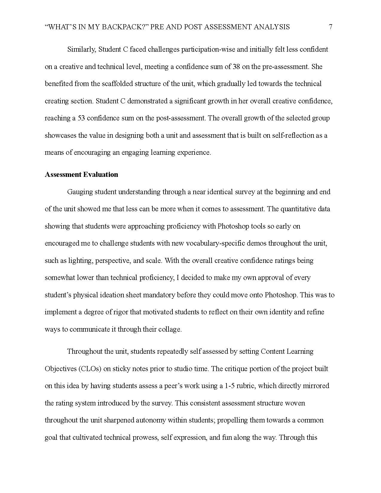 An analysis of pre and post assessment data collected from students in the "What's in my Backpack?" unit.