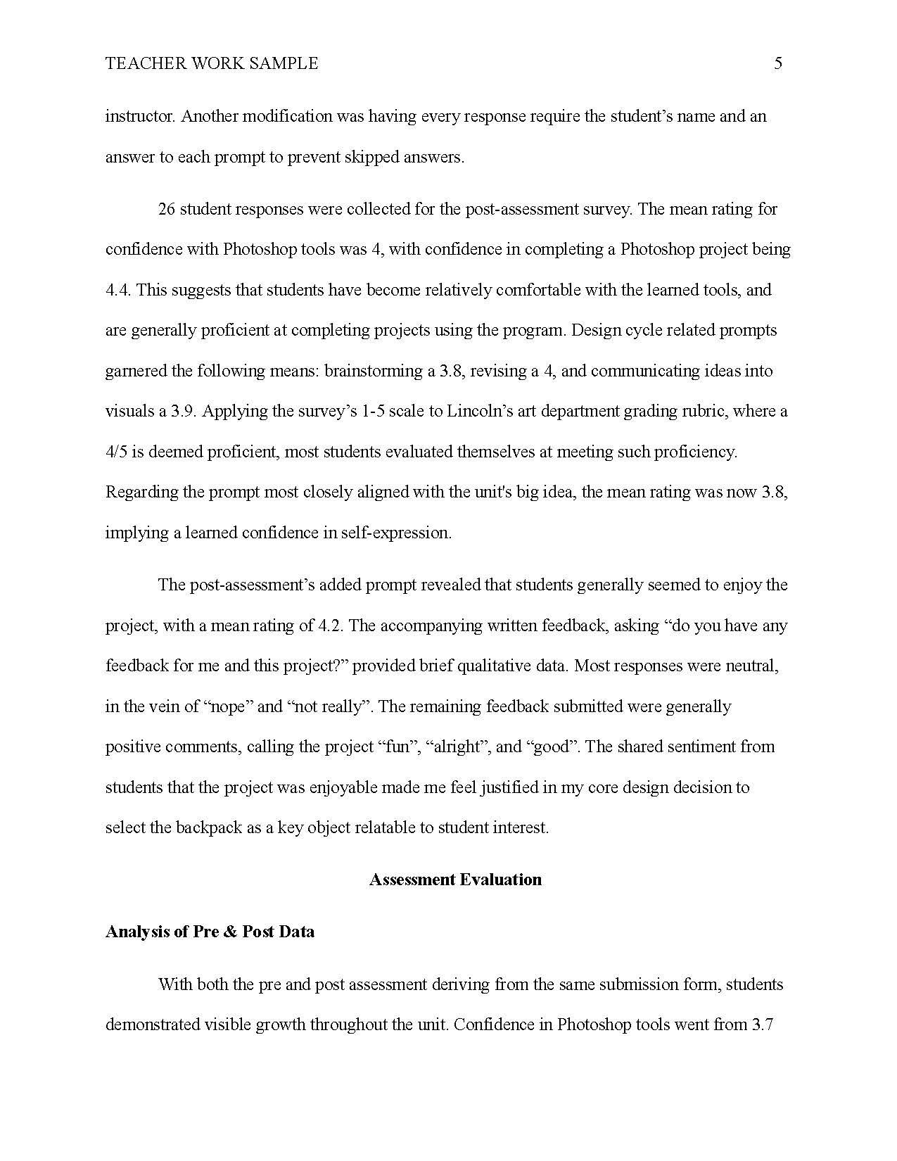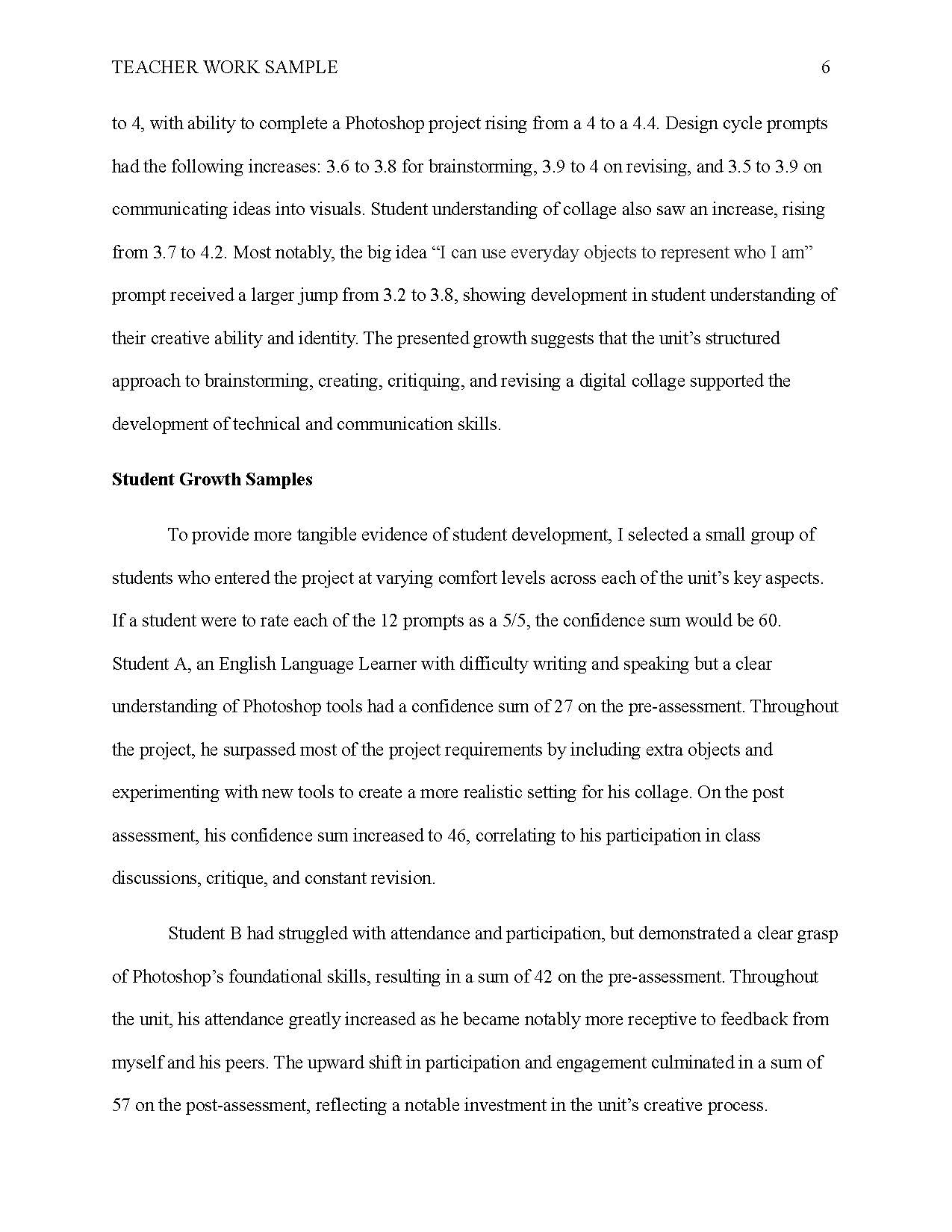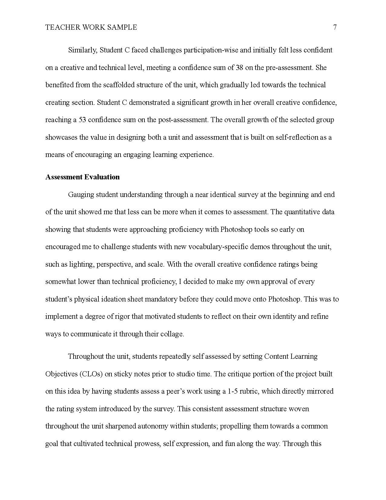 TEACHING WORK SAMPLE