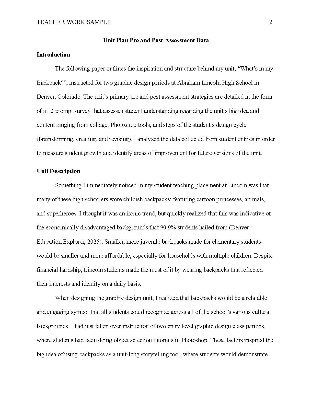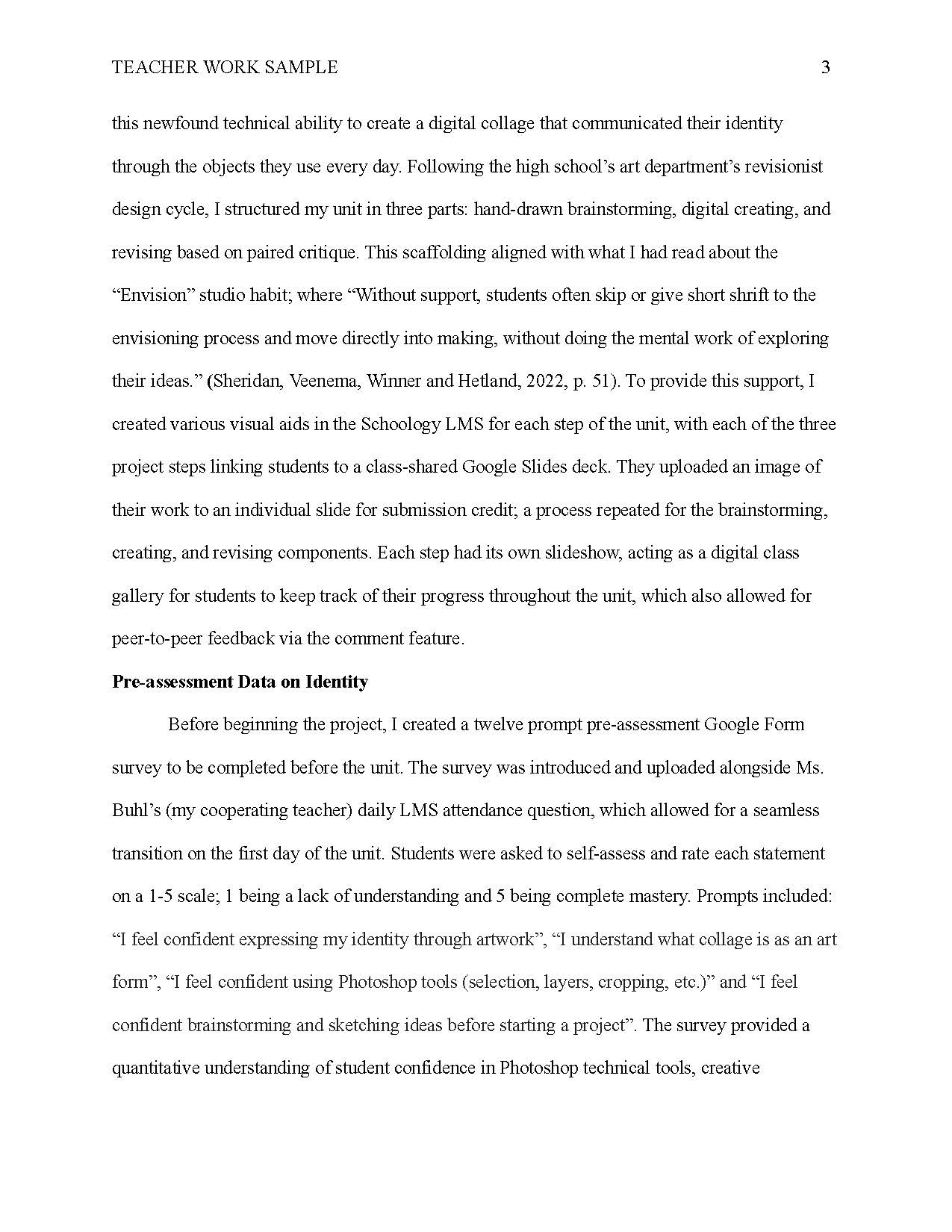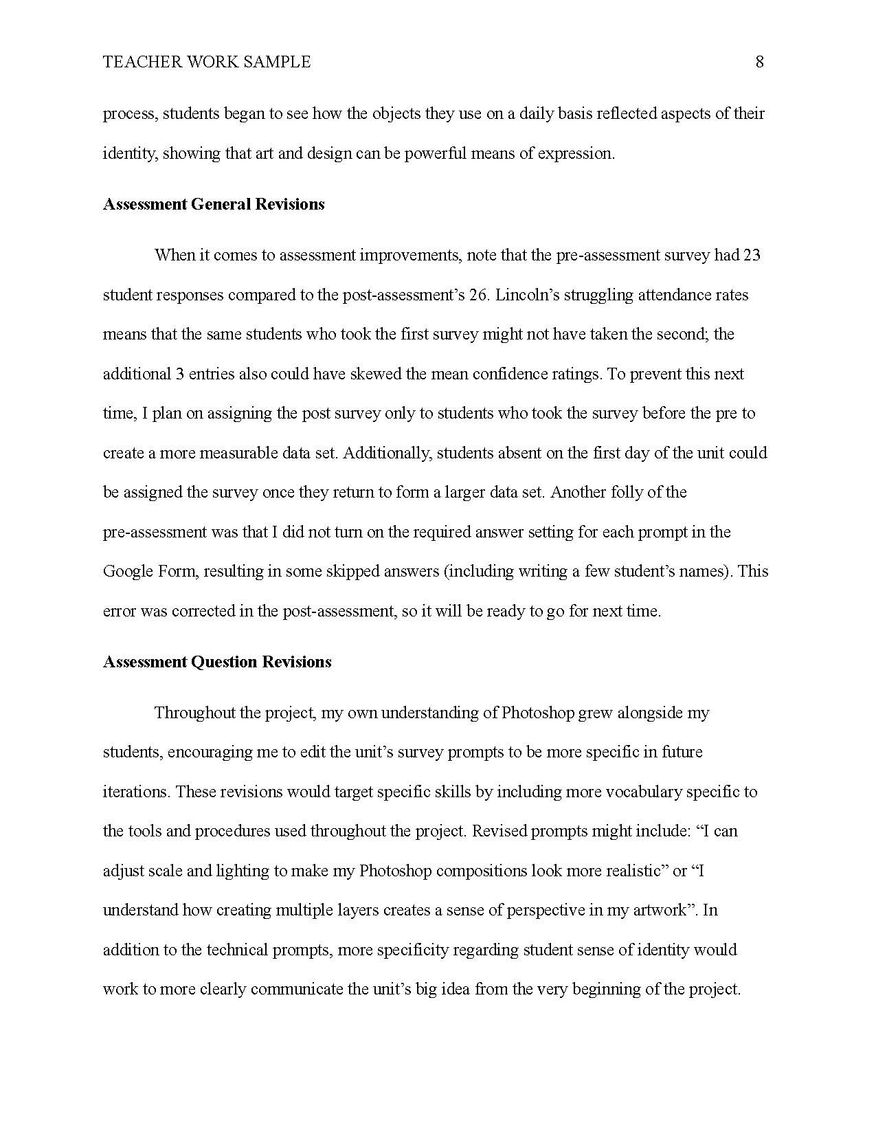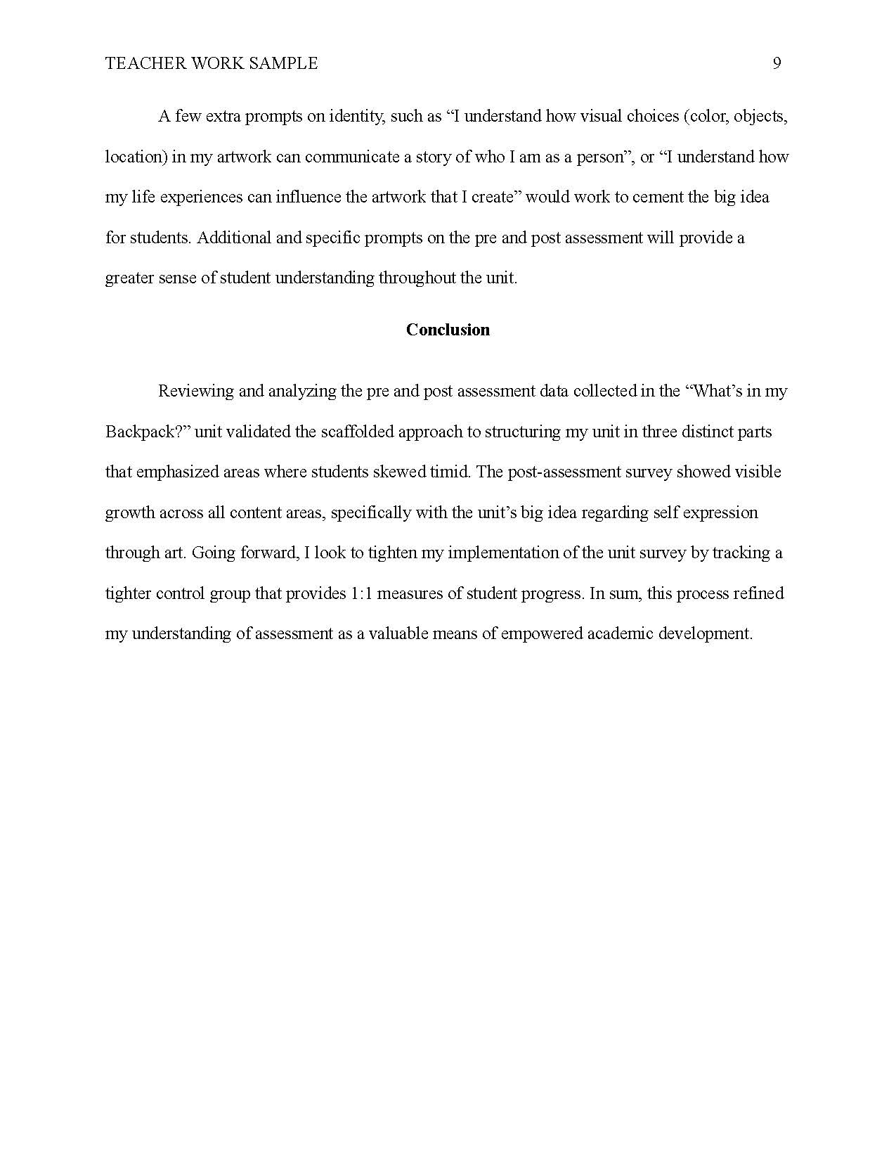TEACHING WORK SAMPLE